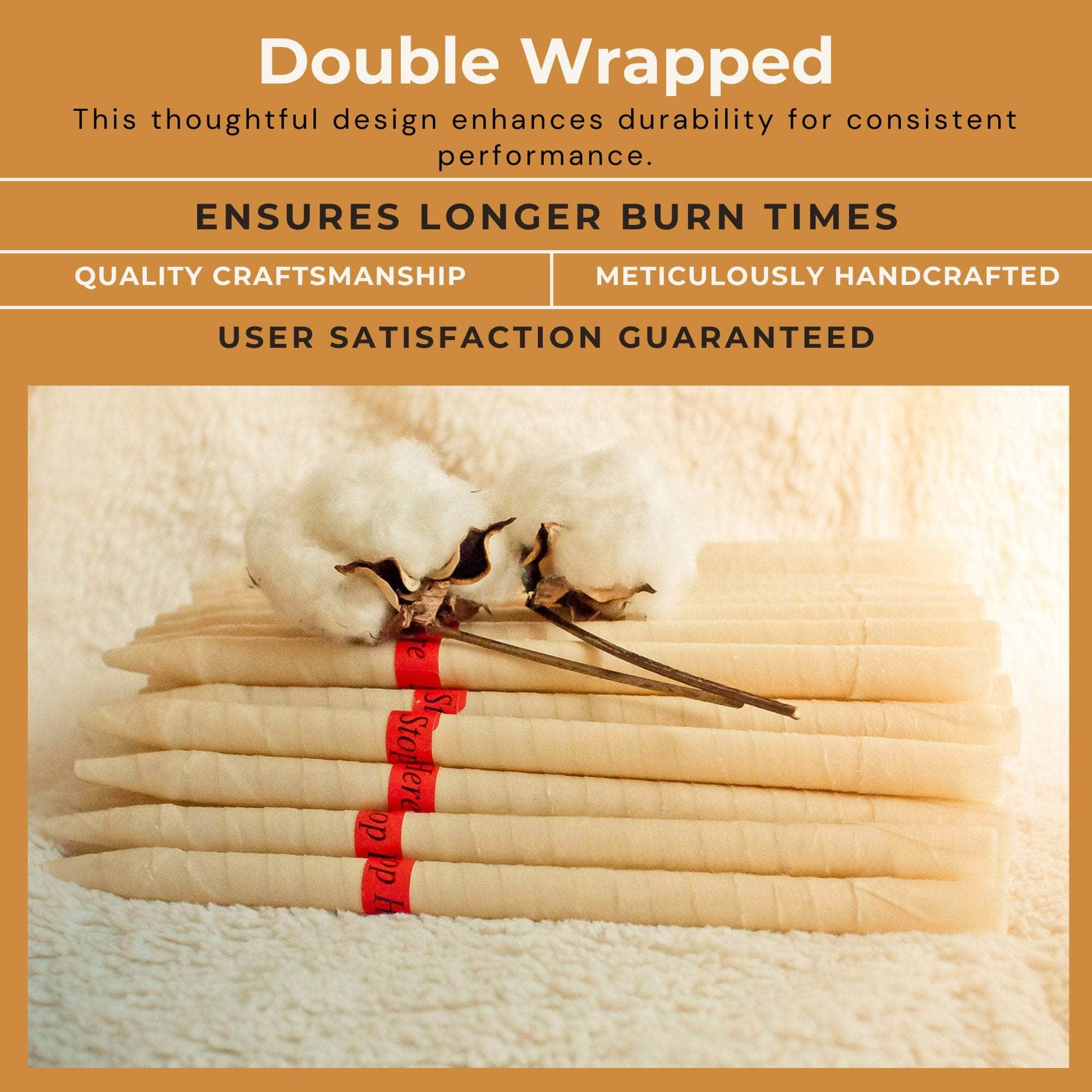 Harmony’s Famous Herbal Beeswax Handcrafted, Organic Ear Candles are 10" long and approximately 1/2" in diameter. Ingredients include certified ORGANIC cotton cloth and locally acquired beeswax. Aromahanced with lavender, tea tree, peppermint & sage essential oils.