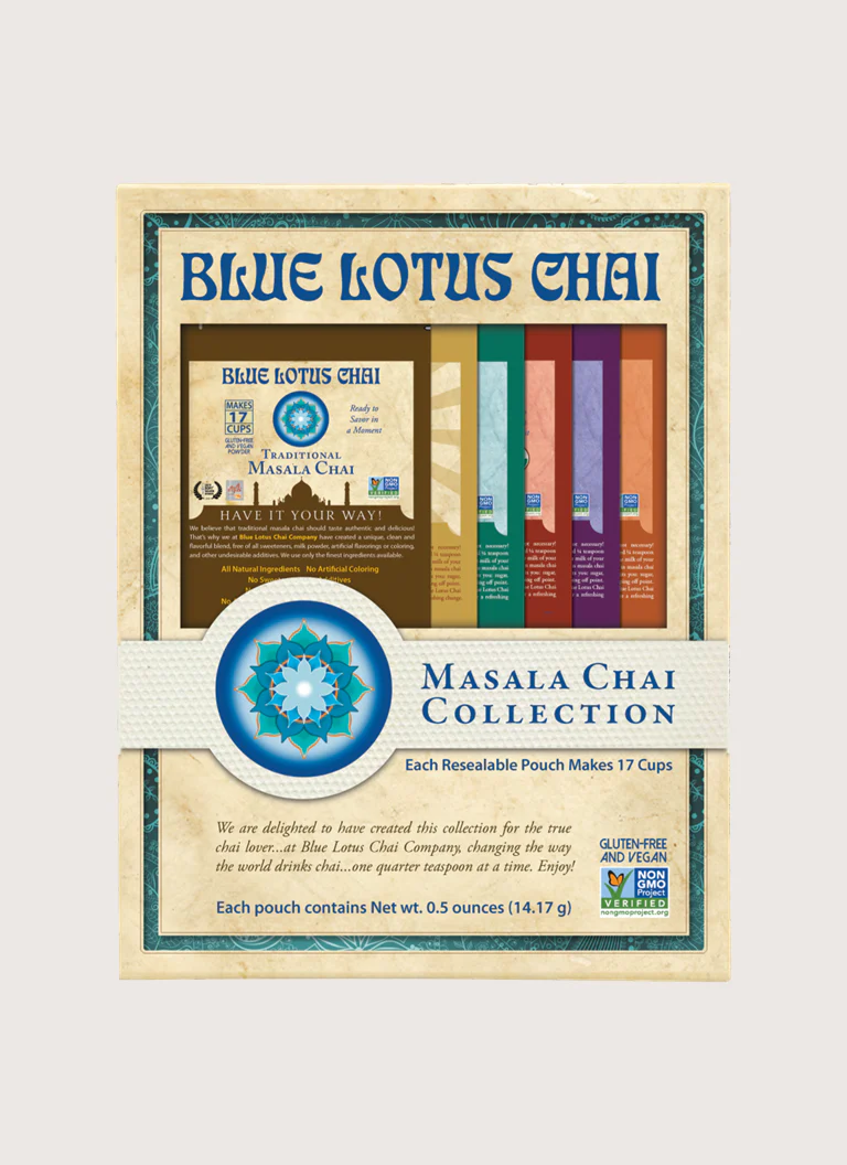 Our Masala Chai Collection is an economical and enticing way to try all six of our masala chai varieties. Each stand-up chai pouch makes 17 cups of delicious, authentic masala chai. Whether for yourself or a loved one, our Masala Chai Collection is the perfect gift for the chai lover in your life!