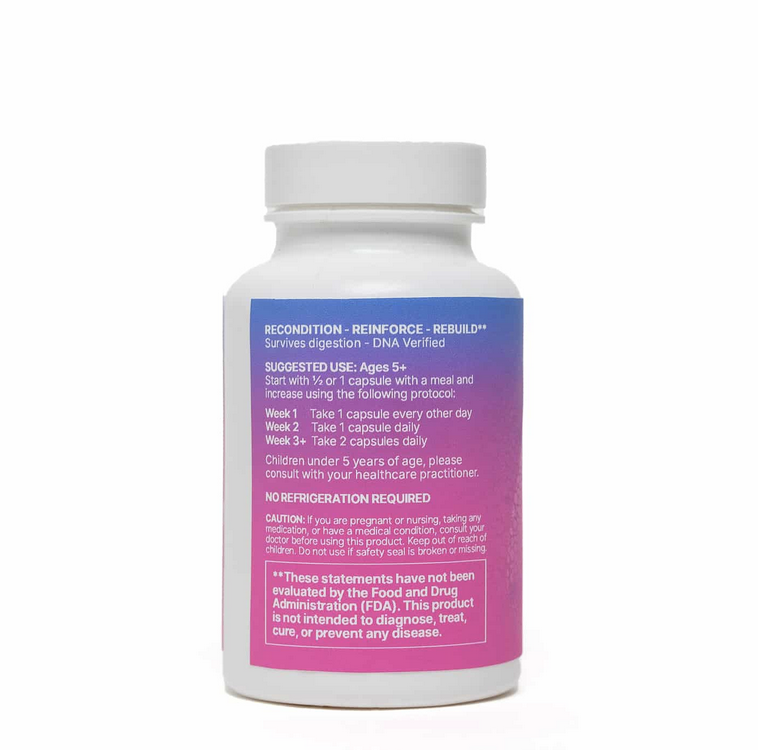 A 100% spore-based, broad-spectrum probiotic shown to maintain healthy gut barrier function. This unique all-spore formula effectively RECONDITIONS the gut by promoting microbial diversity and maintaining key health-promoting, commensal gut bacteria.