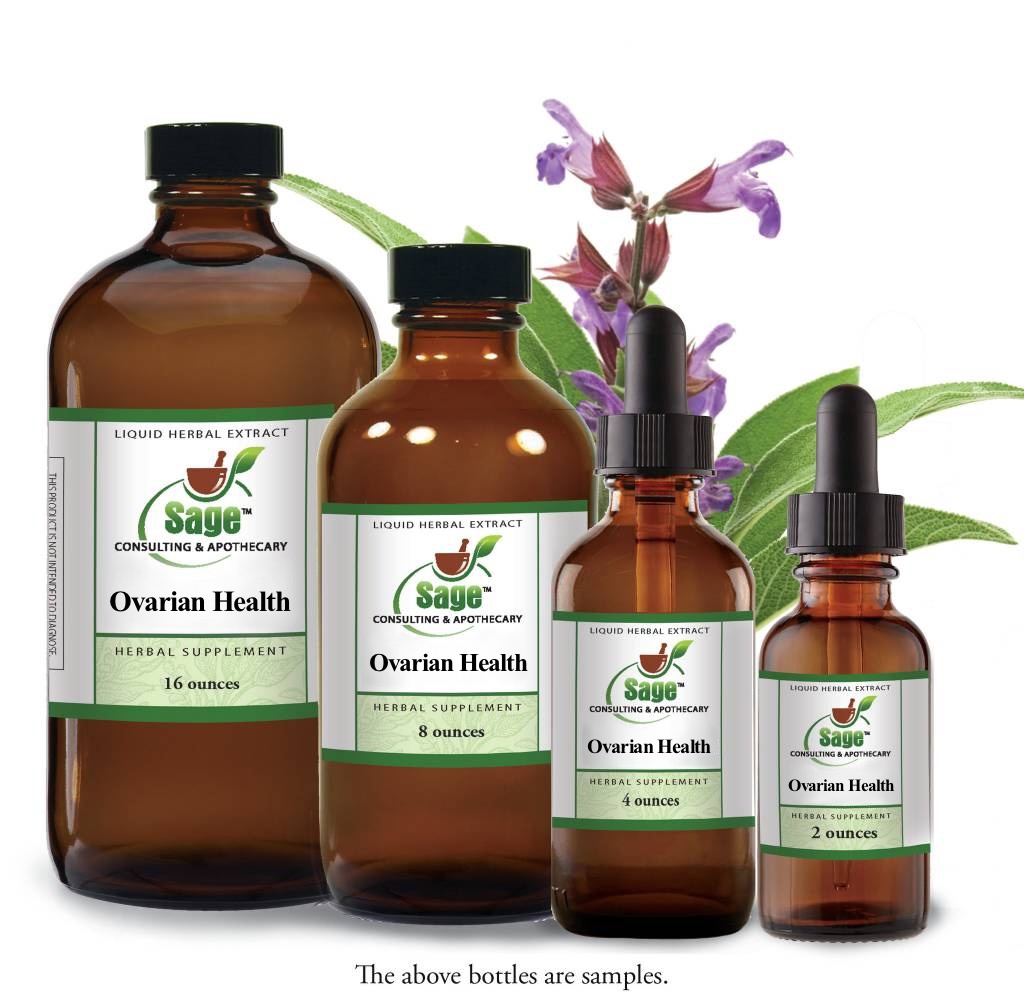 Ovarian Health Tincture contains individually prepared tinctures of: Kudzu* (Pueraria lobata) root, Chaste Tree Berry (Vitex agnus-castus), Saw Palmetto (Serenoa repens) berry, Yarrow* (Achillea millefolium) herb and flowers, Poke (Phytolacca americanas) root, Dong Quai Root (Angelica sinensis), Lemon Balm*(Melissa officinalis) leaf.