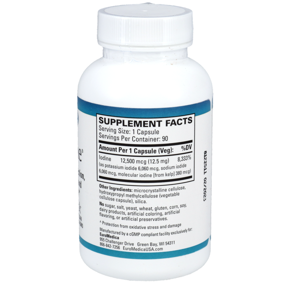 Tri-Iodine® provides three beneficial forms of iodine, an essential element. Available in two strengths for targeted supplementation: 6.25 mg total iodine (equivalent to 6,250 mcg), and 12.5 mg total iodine (equivalent to 12,500 mcg) per capsule. Optimal levels of iodine are imperative to many systems in the body including: