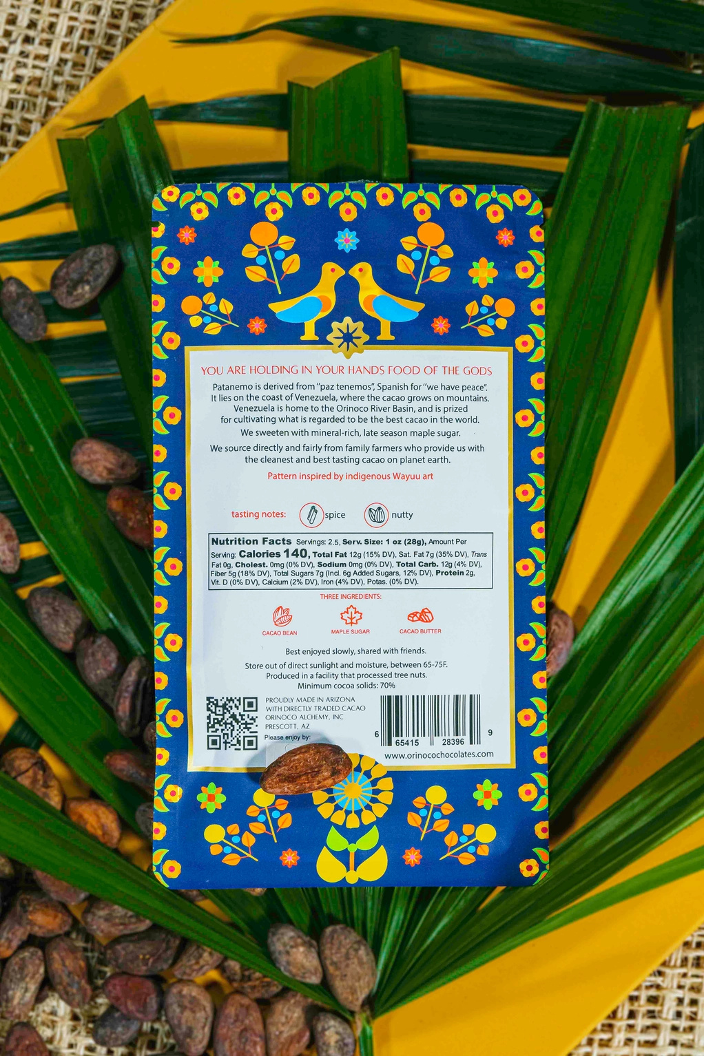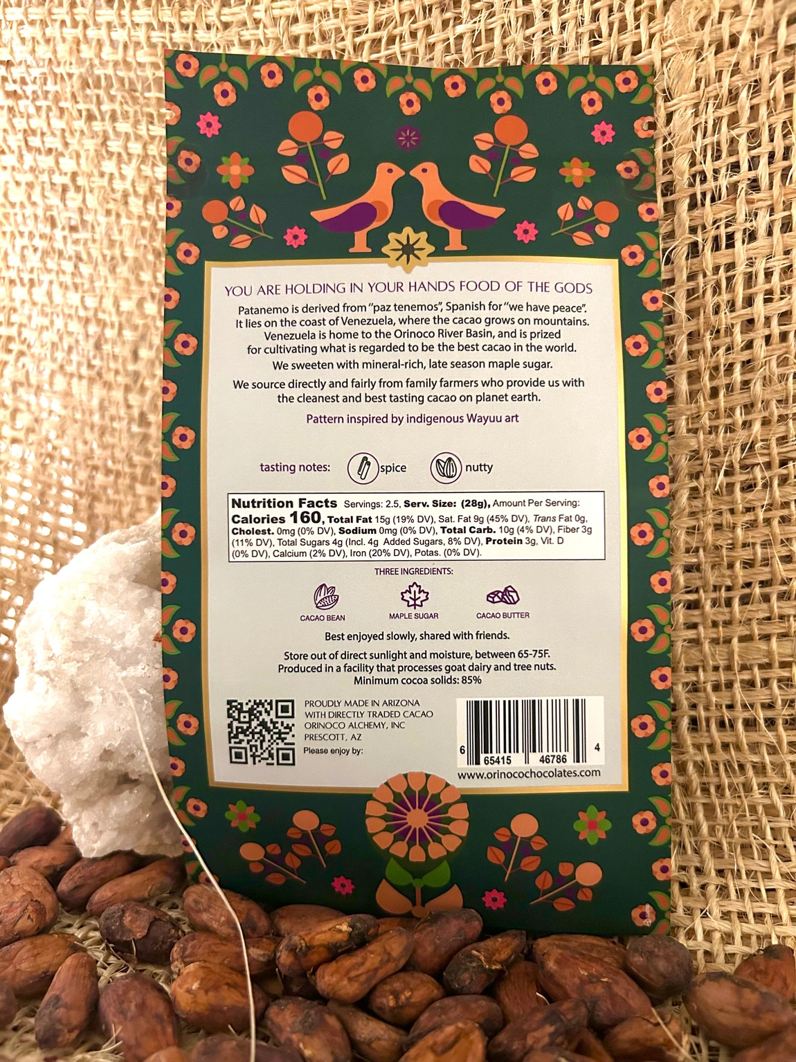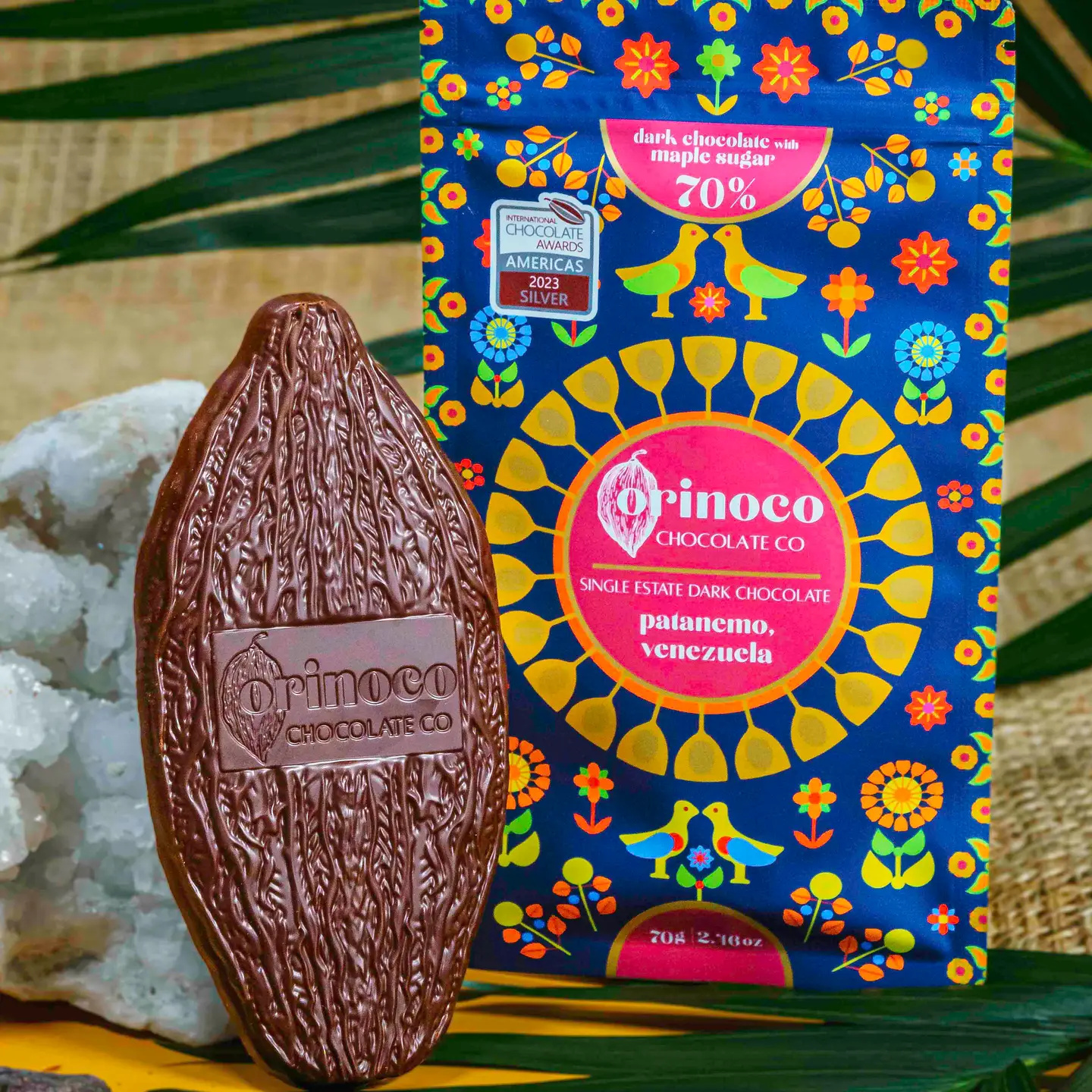 Single origin, single estate Patanemo, Venezuela 70% Chocolate bar, made with only 3 ingredients: cocoa beans, maple sugar, and cocoa butter.