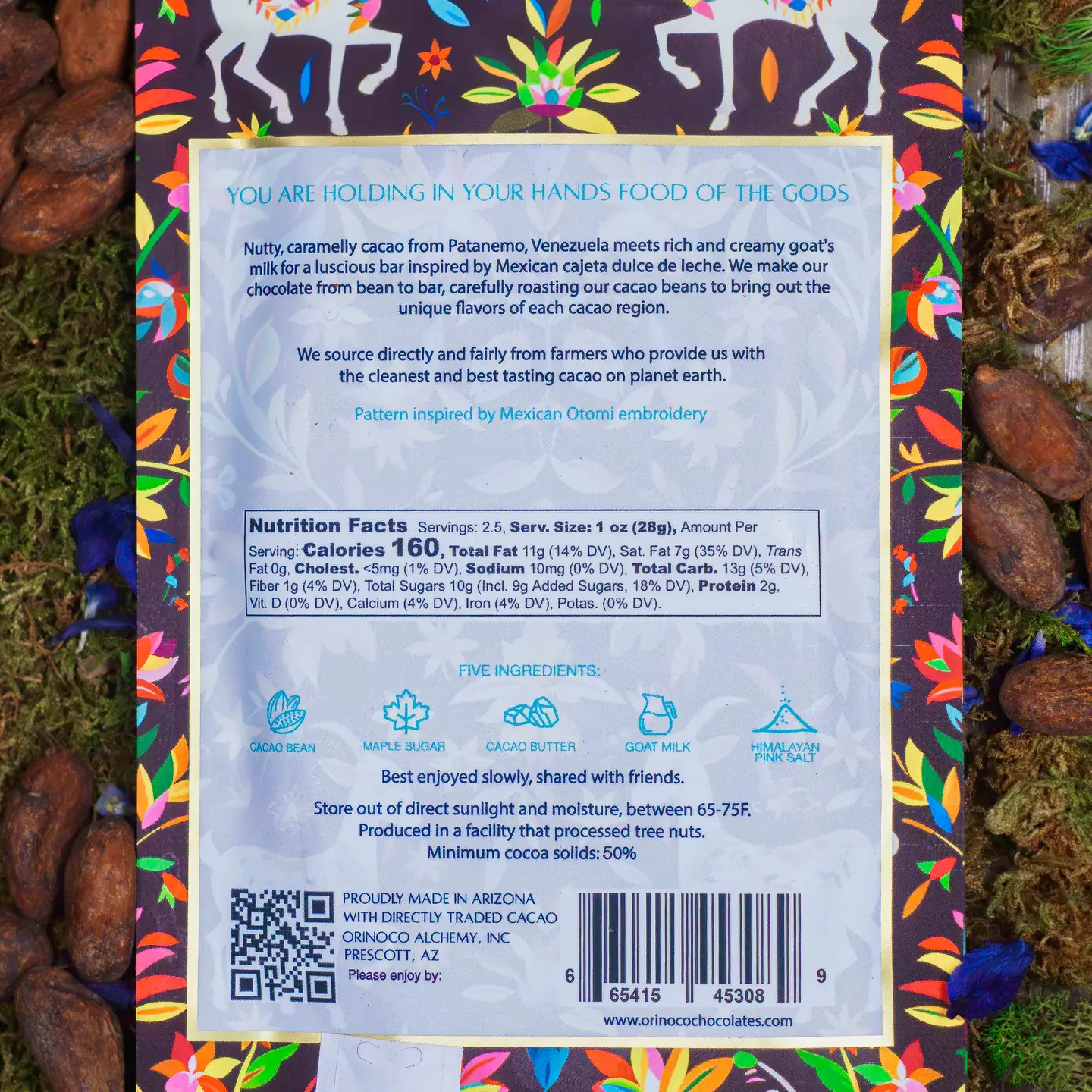 Dark and intense, using nutty cacao from Patanemo, Venezuela. A true cacao lover's delight.