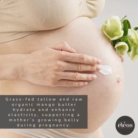 Store Eleos products in a cool, dry place away from direct sunlight to maintain their freshness and effectiveness. Our body butter comes in amber glass jars, which provide UV protection, shielding antioxidants, vitamins, and fatty acids from degradation. These jars also prevent exposure to heat, air, and moisture, preserving the integrity of sensitive ingredients like tallow and mango butter.